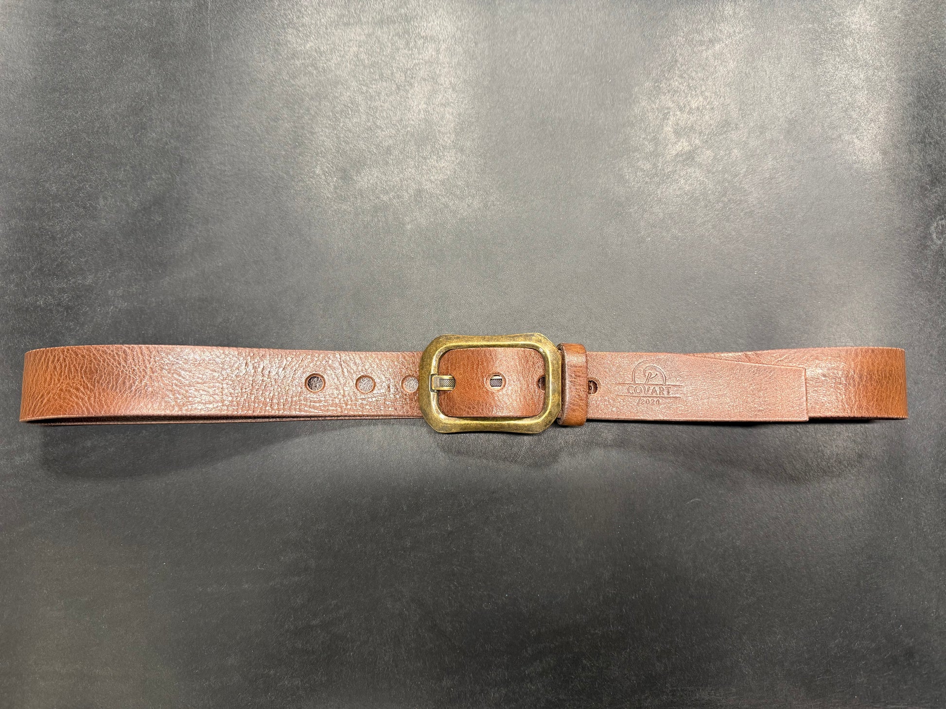 Ručno izrađeni ženski remen širine 35 mm od jedinstvene prirodne kože s izraženim vintage izgledom. Duljina 110 cm (opseg 85–100 cm), s ručno poliranim rubovima te ručno šivanim držačem i kopčom. Smeđa koža u kombinaciji sa sivom kopčom stvara bezvremenski, elegantno-retro karakter za svakodnevne i klasične kombinacije.